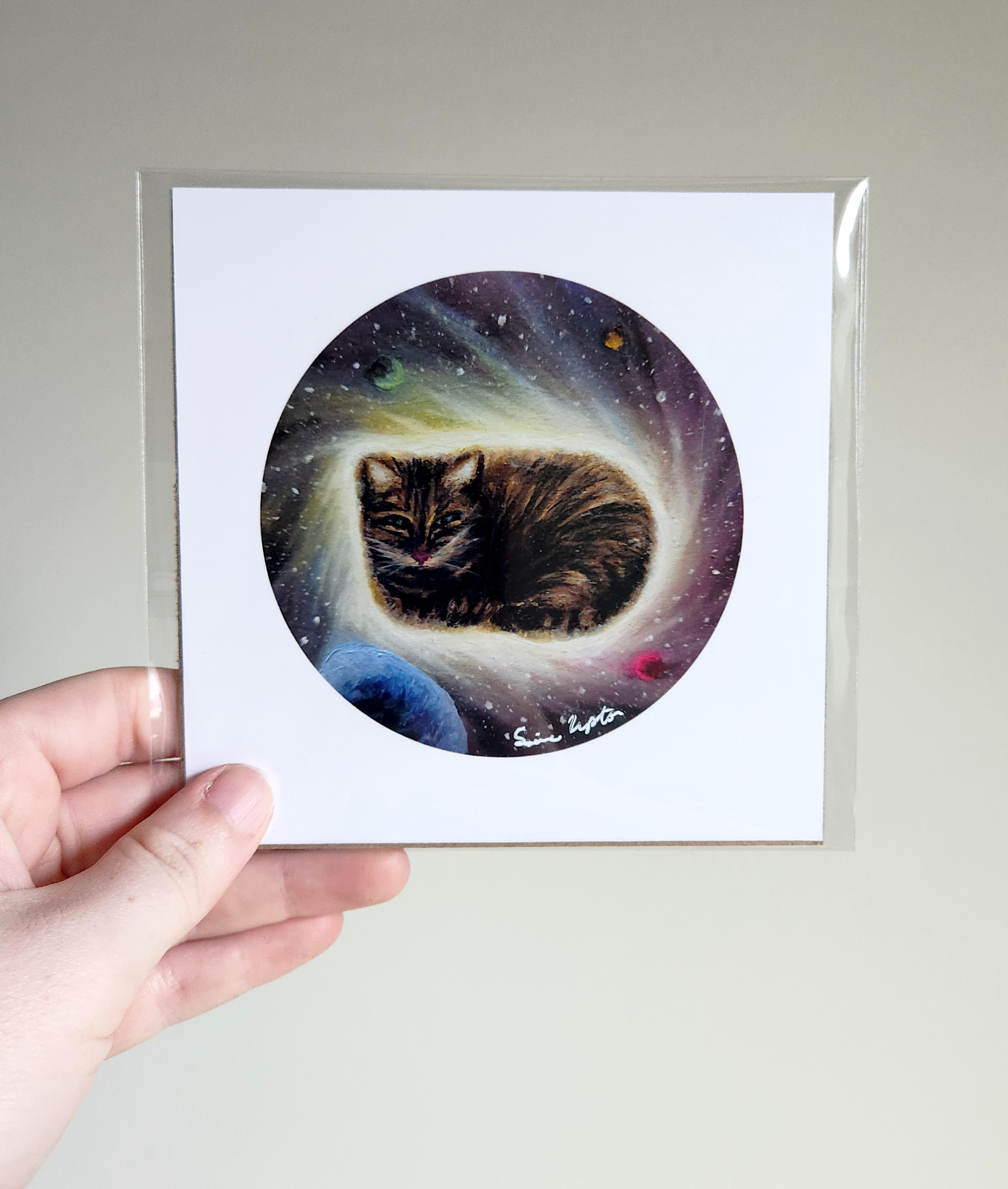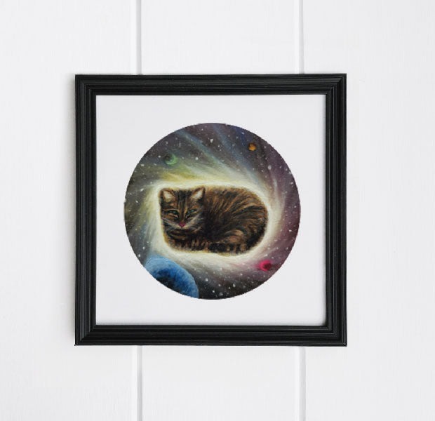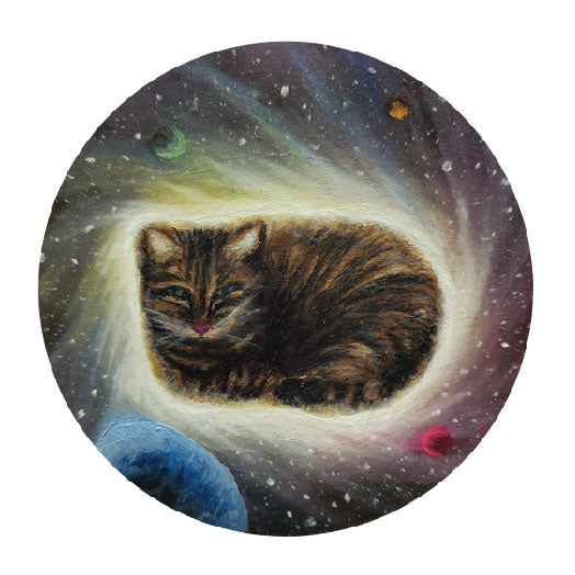 Based off my husband's dark tabby cat, Precious, this cat blackhole is the second of five in my Cat Galaxy series. This cat represents a blackhole inviting you to come closer.