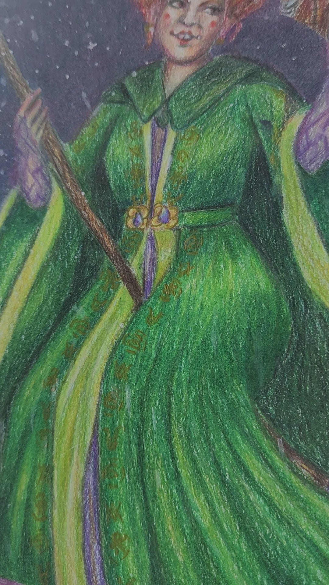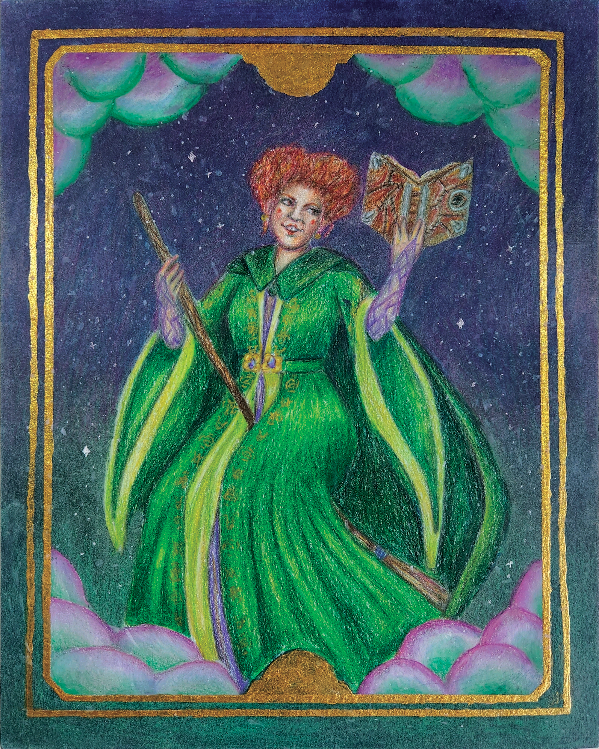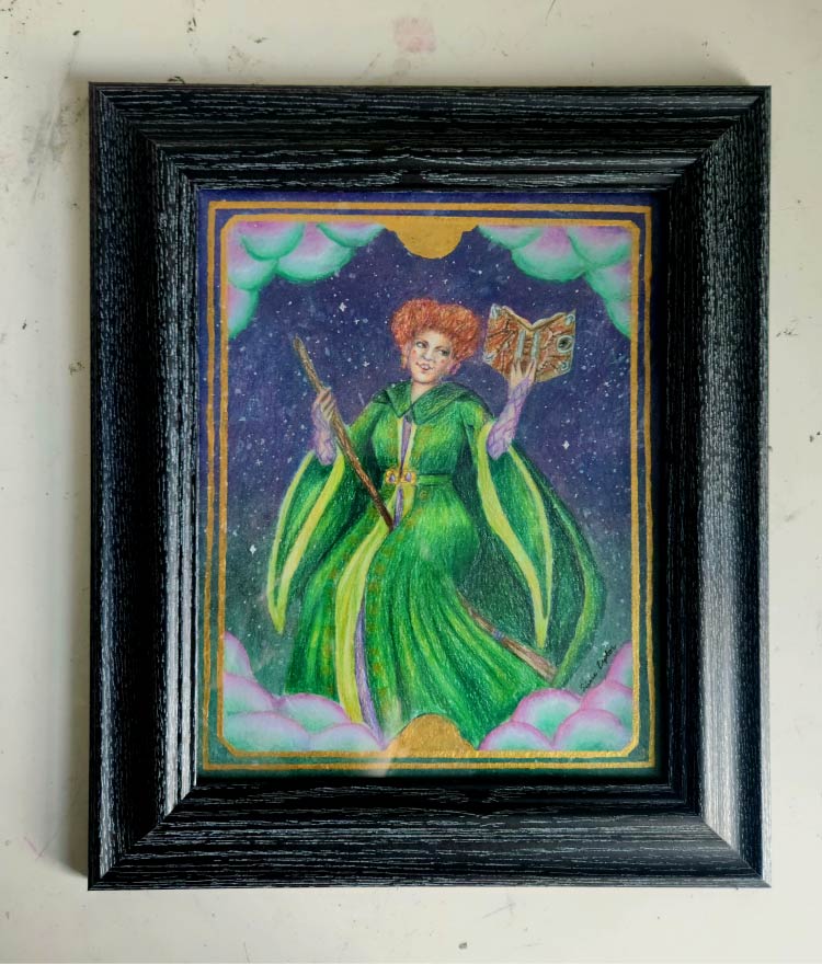 8in x 10in Oil paint and color pencil portrait of Winifred with gold paint. Comes framed in a black wood frame ready to hang.