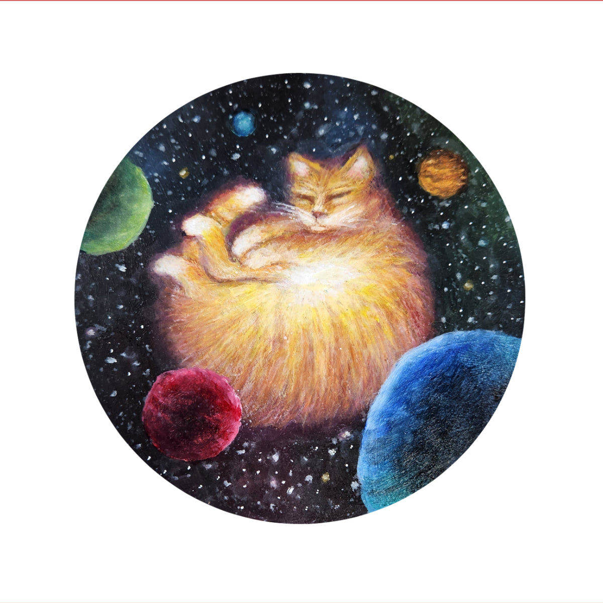 Based off my own orange tabby cat, Quizzie, this cat sun is the first of five in my Cat Galaxy series. This cat represents a normal yellow star just like the one in our own solar system.