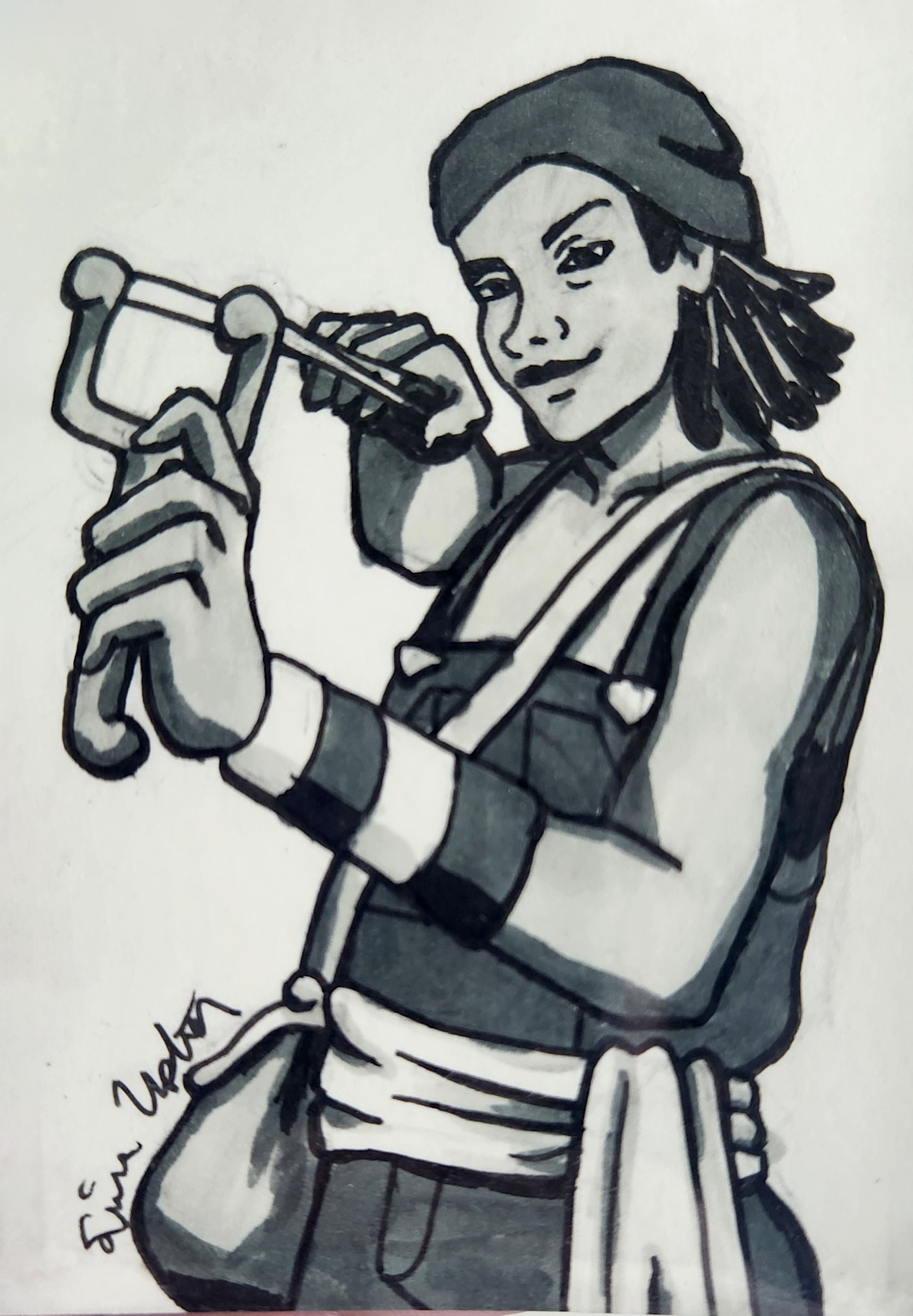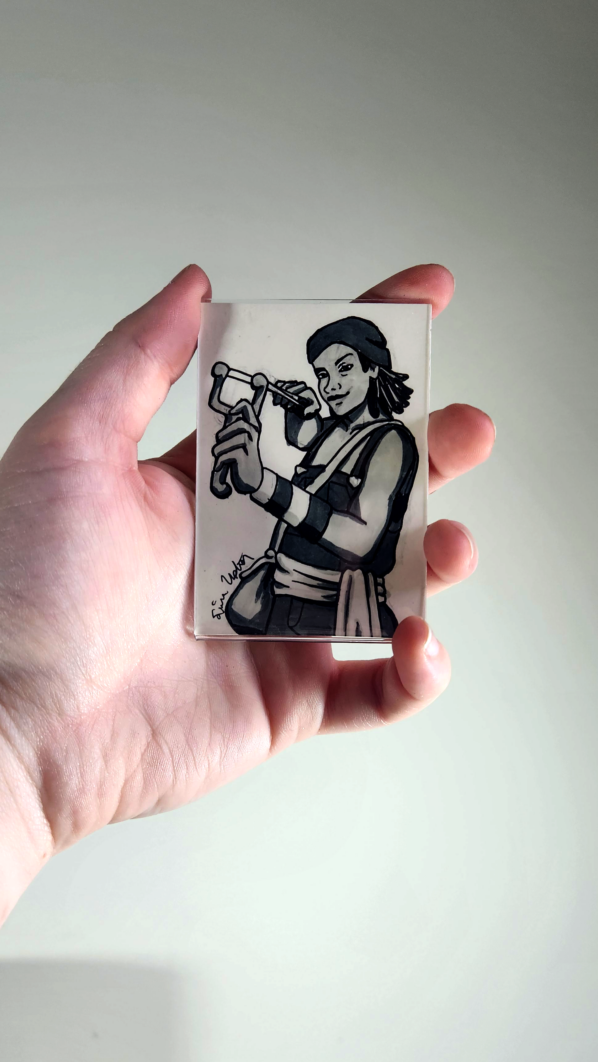 Original 2x3 inch grey and black ink drawing in a magnetic frame.